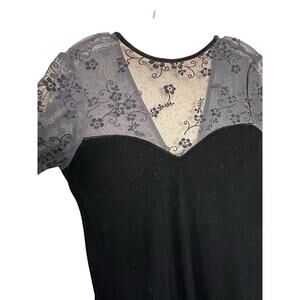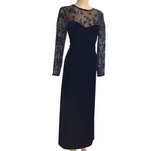 Vtg Y2K Black Velvet Maxi Dress Mesh Bodice Sleeve Whimsigoth Y2K Vampire Floral