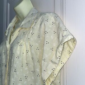 Vtg Y2K Blair light yellow cotton/polyester cap sleeve shirt with gray dots