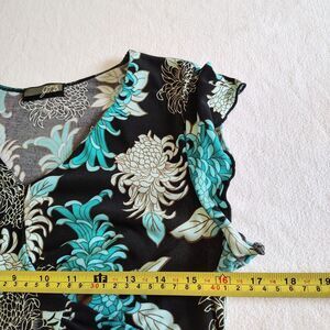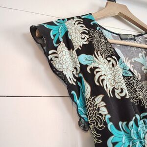 Vtg Y2K Blue Black Floral Print V-Neck Tie Back Whimsi Babydoll Fairy Top Medium