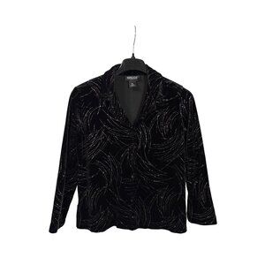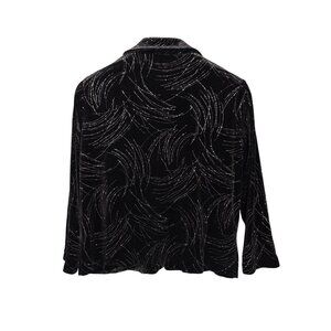 Vintage Y2K Briggs Petite Womens Black Velvet Silver Glitter Swirl Pattern Cardigan Size PL