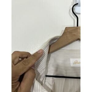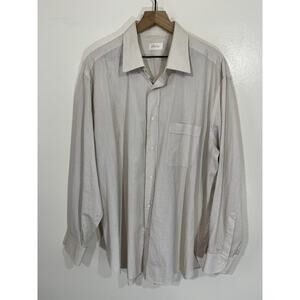 Vtg Y2K Brioni Button Up Striped Dress Shirt 90s Made Italy Preppy Normcore Quiet Luxury Old Money Formal Classic Academia Beige.