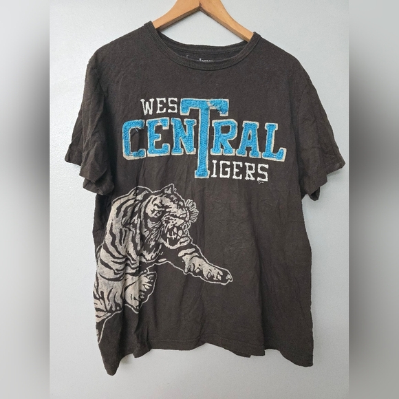 Bold graphic tee with a fierce tiger design. Features vibrant blue lettering. Perfect for casual wear.