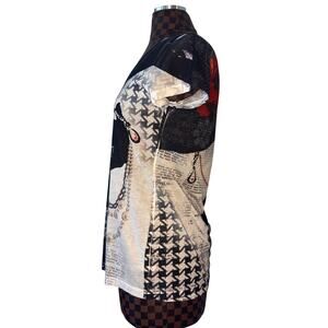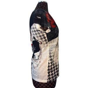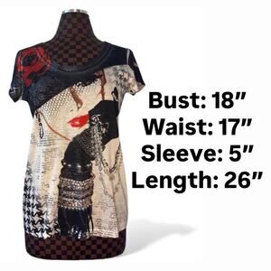 Vtg Y2K Cache AOP Graphic Tee Woman in Hat Size Medium Rhinestone Embellished