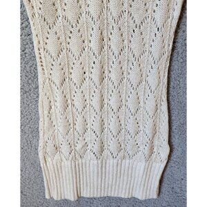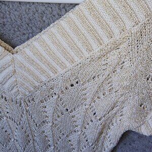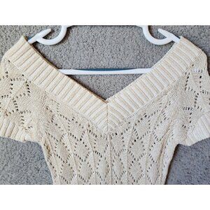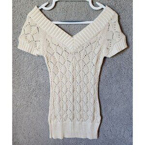 Vtg Y2K Cache Short Sleeve V Neck Open Knit Long Sweater Top Ivory Metallic XS