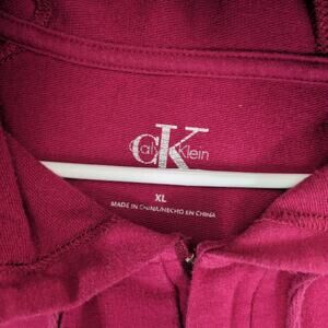 Vtg Y2K Calvin Klein Women's XL Burgundy 1/4 Zip Pullover Hoodie