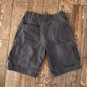 Vtg Y2K Cargo Shorts Mens 32 Gray Flap Pocket Bird Logo D Ring Hong Kong Thick