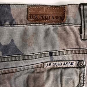 Vintage Y2K U.S. Polo Assn 100% Cotton Multicam Camo Camouflage Baggy Grunge Skater Military Tactical Combat Workwear Streetwear Urban Gorpcore High Rise Canvas Cargo Shorts with Logo