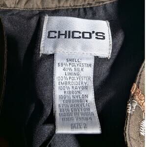 Vtg Y2K Chico's Burgundy Olive Green Silk Blend Patchwork Open Front Jacket 2 L