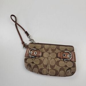 Vtg Y2K Coach Signature Monogram Wristlet Brown Tan Purse Handbag