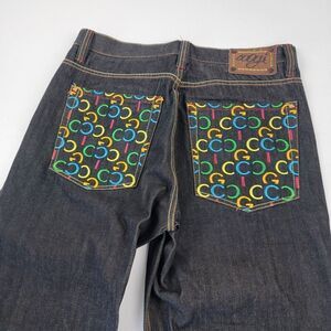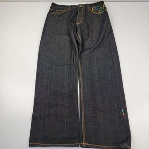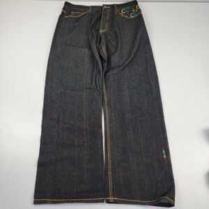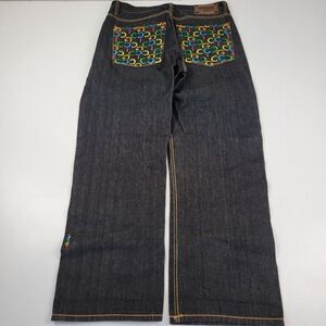 Vtg Y2K Coogi Sweater Pattern Embroidered Denim Baggy Wide Leg Jeans Mens 38x34