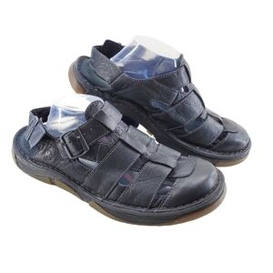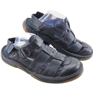 Dr. Martens Archive Fisherman Sandal in black leather, size 12 (UK 11, US 10, EU 46). This vintage Boho/Hippie style sandal features buckles, straps, stitching, and logo accents with a flat rubber street outsole. Ideal for travel, activewear, or casual occasions in summer or spring. The slip-on design includes dual adjustable front & rear buckled straps for a comfortable fit, making it perfect for beach, resort, vacation, or pool wear.