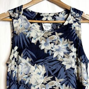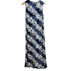 Vtg Y2K Dressing Clio Tropical Floral Maxi Dress Small Navy Blue White 90s USA