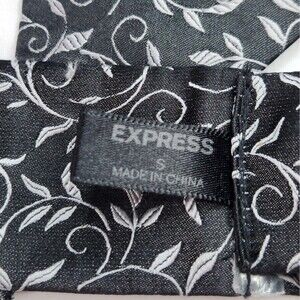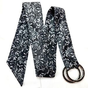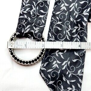 Express 100% Silk Y2K Silver Buckle Black Rhinestone Black Silver Size Small 34" in excellent pre-owned condition. Please feel free to ask questions.