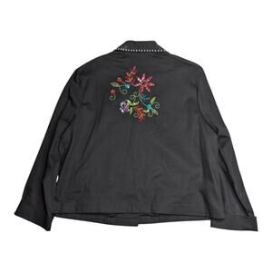 Vtg Y2K Faith Black Cotton Floral Embroidered Embellished Button Up Jacket M