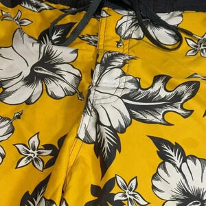 💥Vtg Y2K Floral Men’s Swim Trunks Shorts Swimsuit Bottoms KIRRA Yellow Gray LG