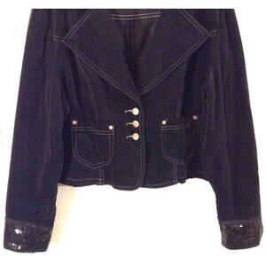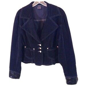 Vtg Y2K Fubu Jacket Wn 2X Black Faux Suede Crop Sequin Whimsigoth Grunge 90s