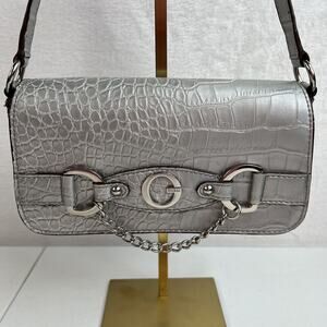 Vtg Y2K Guess Mini Bag Silver Croc Embossed Chain Accent Purse Handbag Retro