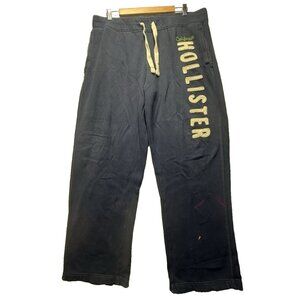 Vtg Y2K Hollister Navy Blue Stitched Spellout Sweatpants Men's Sz M Distressed