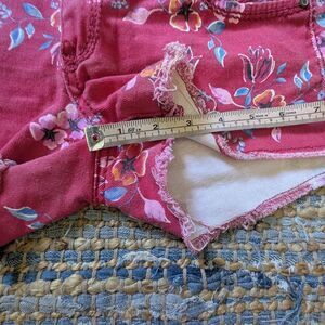 Vtg Y2K Hot Kiss Floral Denim Shorts 5 CiCi Frayed Cutoff Low Rise Raspberry Pin