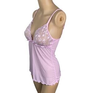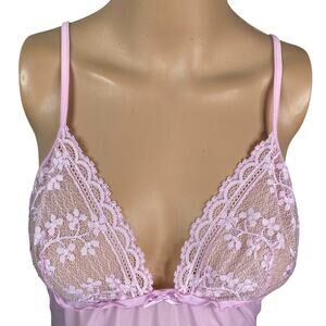 Vtg Y2K Intimissimi Pastel Pink Lace Sheer Coquette Babydoll Camisole SZ L
