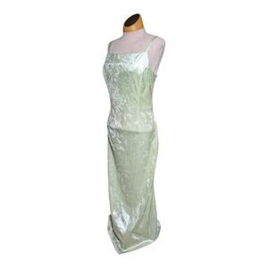 Vtg Y2K Jessica McClintock Pale Green Velvet Shimmer Lace Up Maxi Dress Sz 8