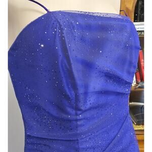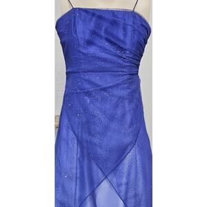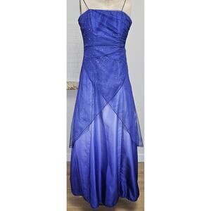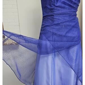 This vtg purple ombre dress is to die for! Straight out of Bridgerton, this satin dress has net overlay that sparkles with glitter and tiny iridescent Rhinestones. The gown is full length that's a bit longer in the back.