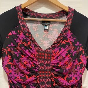 Vtg Y2K Just Cavalli Blouse Women’s 40 Small Black Floral Stretch Designer Italy