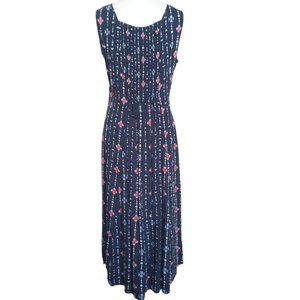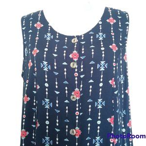 Vtg Y2K Koret Blue Geometric Print Midi Shift Dress Plus Size 1X Sleeveless Elastic Back