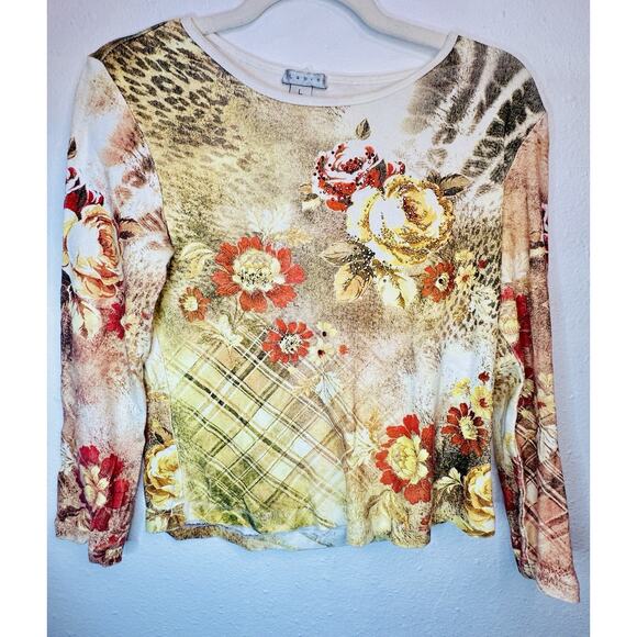 Vtg Y2K Lapis Large Floral Animal Print Boho Jeweled Top