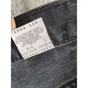 The product is a pair of vintage Y2K Levi's 550 black jeans for men in size 32x36, which translates to a relaxed fit and tapered style. Made in the USA on August 1, these jeans are a classic piece with a timeless appeal. The black color adds a sleek and versatile touch, perfect for everyday wear. The Levi's brand ensures quality and durability, making these jeans a staple in any wardrobe.