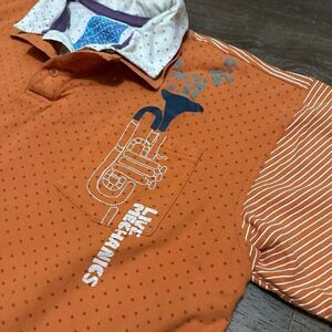 Vtg Y2K Live Mechanics Mens Sz 3X Orange Polo Embroidered Music Theme Saxophone