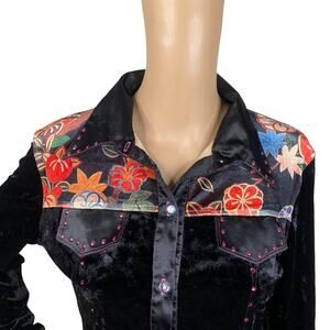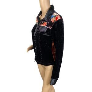 Vtg Y2K Love Amour Black Crushed Velvet Floral Whimsigoth Button Down Top SZ M