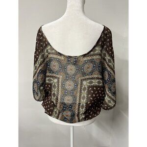 Vtg Y2K MUDD Large Sheer Blouse Top Brown Floral Western Prairie Boho Grunge