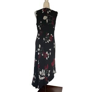Black Maggy London 100% Silk Asymmetric Hem Fairy Grunge Maxi Floral Print Dress