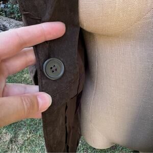 Vtg Y2K Marcelle Renee Brown Suede Leather Whipstitch Trench Coat Women's Small