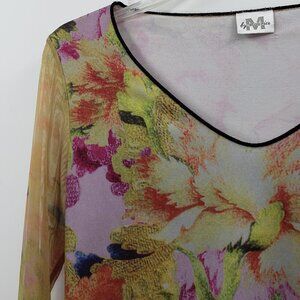 Vtg Y2K Maurices Mesh Sleeve Top Size S Digital Floral Print Ruffles Fairycore