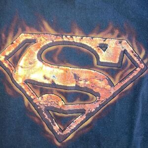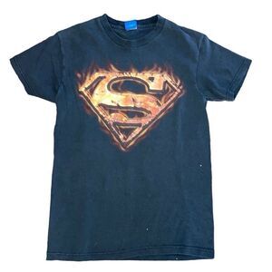 Vtg Y2K Men’s Size Small Short Sleeve Superman Flame Front Logo Graphic T Shirt
