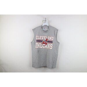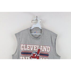 Vtg Y2K Mens XL Faded Chief Wahoo Cleveland Indians Baseball Muscle T-Shirt Gray