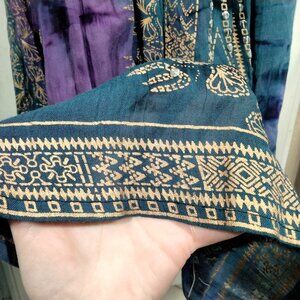 Vtg Y2K Midi Strapless Dress XL Boho Hippie Goth Whimsical Beaded Gold Accents