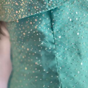 Bring on the sparkle with this Y2K-era Mori Lee strapless top in a dreamy aqua blue! Covered in iridescent sequins and microbeads, this corset-style silhouette screams early 2000s prom queen realness — think Paris Hilton, 13 Going on 30, and Delia’s catalog dreams. Perfect for prom, parties, or pairing with low-rise jeans for a full-on retro revival, this piece is a gem from the glittery days of rhinestones and butterfly clips.