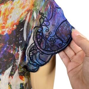 Vtg Y2K Mushka Sienna Rose Colorful Floral Embroidered Chiffon Tunic Top SZ M