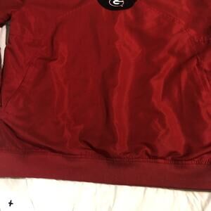 The product is a vintage Y2K Nike Georgia Bulldogs 1/4 zip pullover windbreaker jacket in men's XL size. It features the official team logo and colors, making it a perfect fan apparel item for supporters of the Georgia Bulldogs football team. The jacket also includes reflective elements for added visibility, and was manufactured in Vietnam under Nike's licensing agreement with the university. Perfect for any fan looking to show their team pride in style.