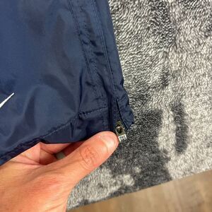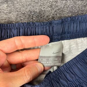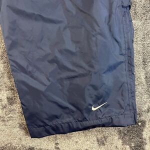 Vtg Y2K Nike Nylon Track Pants Lined Ankle Zip Navy Blue Men's XXL Silver Tag. **Bottom of zipper pulls have broken; still able to zip up. Small white mark on back bottom of pants. No other flaws noted. Refer to all photos for condition and sizing.