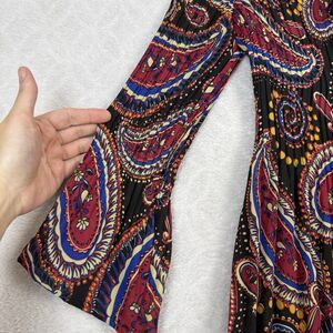 Vtg Y2K Pleated Ruffle Top Womens Large Paisley Boho Whimsigoth Dark Fairy 2000s