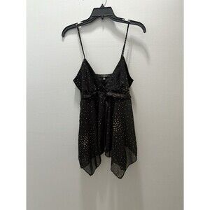 Vtg Y2K Rampage Babydoll Tank M Black Gold Glitter Sheer Fairy Mystical