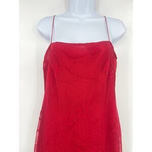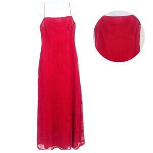 Vtg Y2K Rampage Mesh Slip Dress Sz L Coquette Maxi Glitter Overlay Red Floral