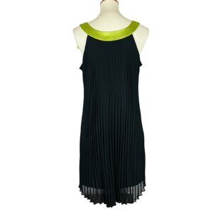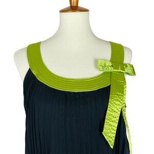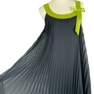 Vintage Y2K Robbie Bee trapeze dress in size 10. Sheer pleated overskirt with a fully lined bodice. Made in China of 100% polyester.accented with acid green straps & bow. Measures 20.5" armpit to armpit, 37" shoulder to hem. Excellent condition with no holes, tears, stains, or ripped seams. Smoke free, pet friendly home.