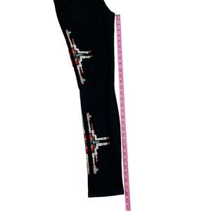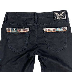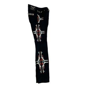 Vtg Y2K Robins Jeans Stretch Blk Denim Low Rise Chapa Embroidered Navaho Aztec