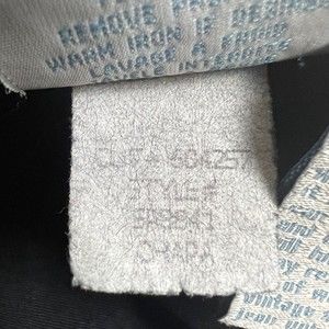 Clean! No fading of the black color. No stains. No rips or holes. A loose thread here and there in the embroidery but nothing that has damaged the design. Excellent condition!