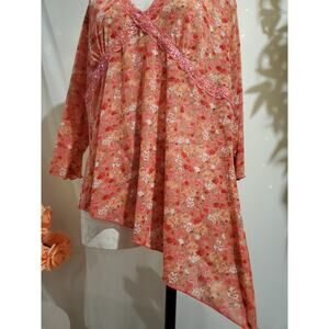 Vtg Y2K Self Esteem Womens Lace Trim Sequin Asymmetrical Babydoll Top 2X Fairy